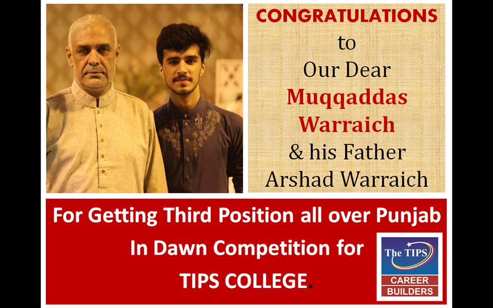 : Got Third position all over Punjab in Dawn Competition for TIPS College.